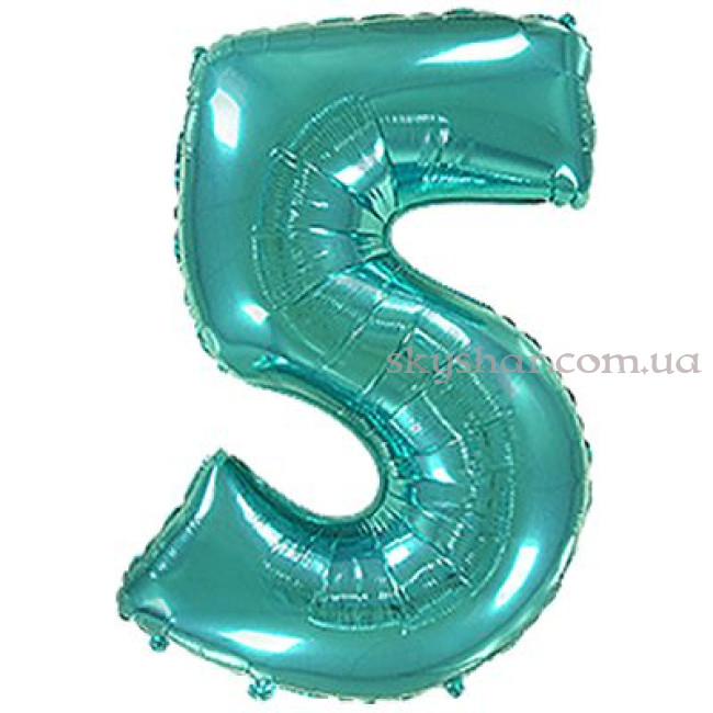 Фольгированная цифра "5" Бирюзовая
