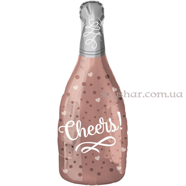 Фольгированный шар "Бутылка шампанского CHEERS розовое золото"