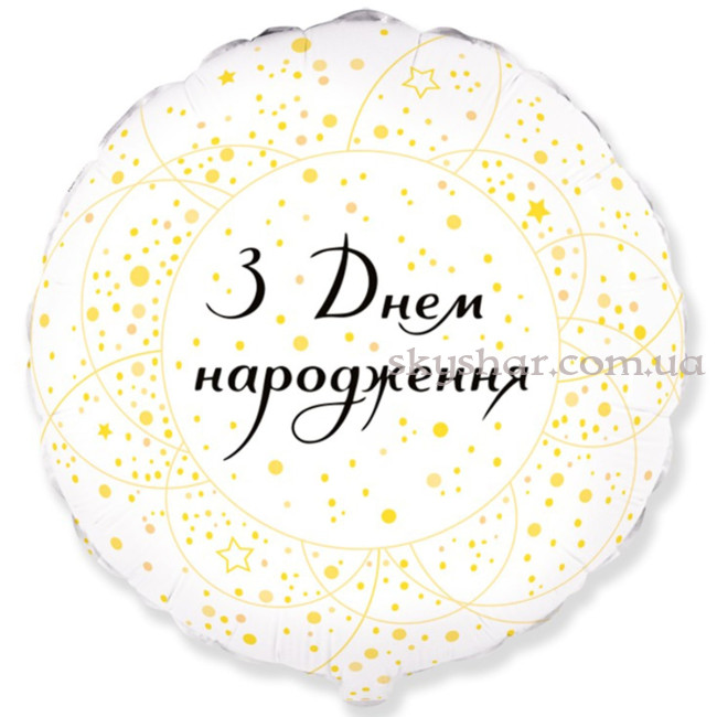 Фольгированный шар "З Днем народження! Золотисті кола на білому"