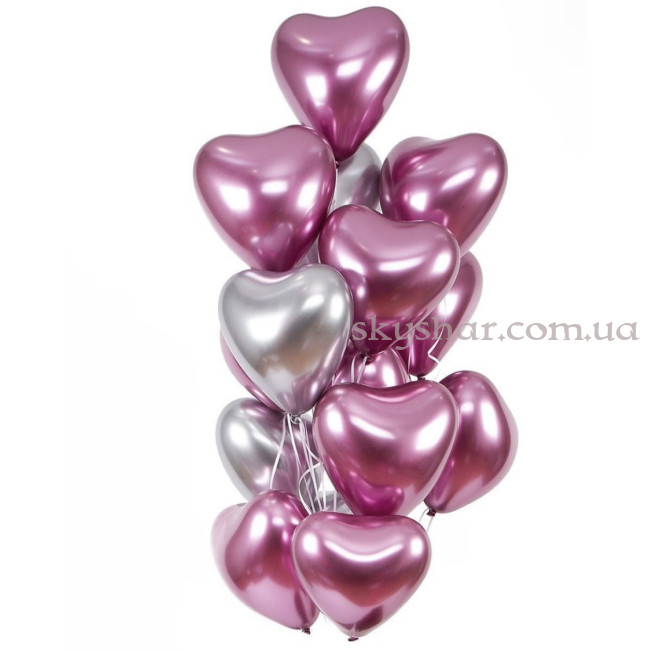 Гелиевые шары "Сердечки Хром" Розовые и Серебристые (30 см)