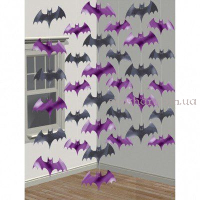 Состав - 6 лесок украшенных силуэтами летучих мышей из легкого блестящего пластика