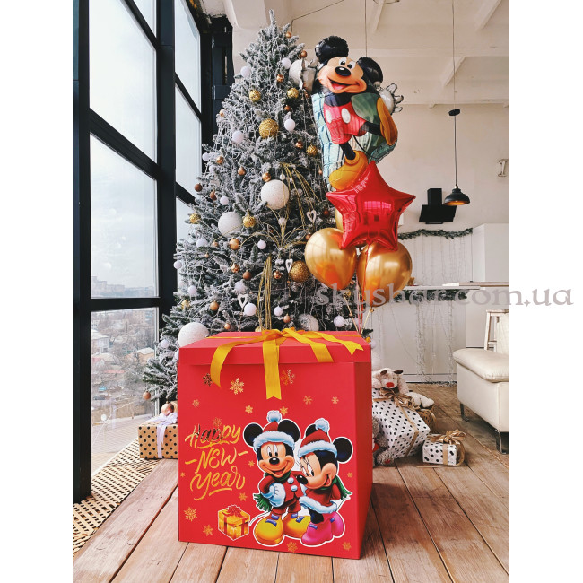 Коробка сюрприз с шарами "Happy New Year Микки Маус" красная