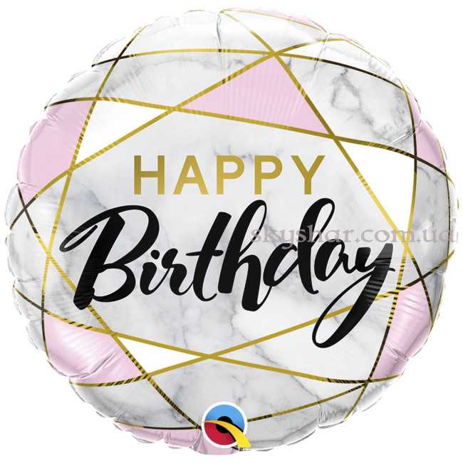 Отзывы Фольгированный шар круг "Happy B-Day Мраморные треугольники"