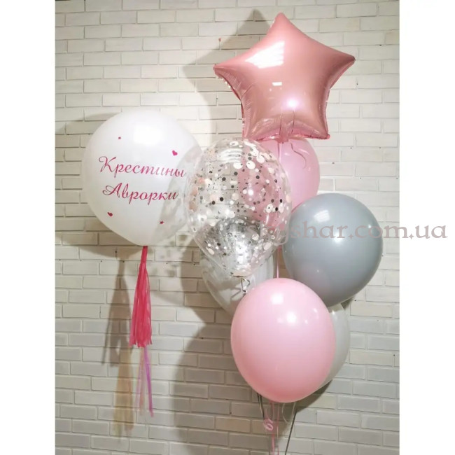 Набор шаров на Крещение для девочки в розовой гамме со звездой