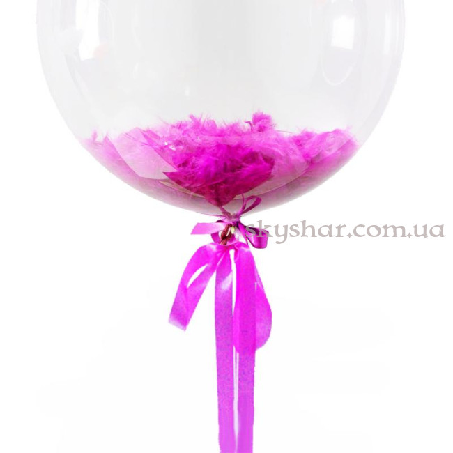 Шар Баблс с перьями малиновыми 61 см