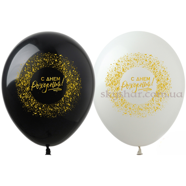 Гелиевые шары "С Днем Рождения (Золотое напыление)" (30 см)