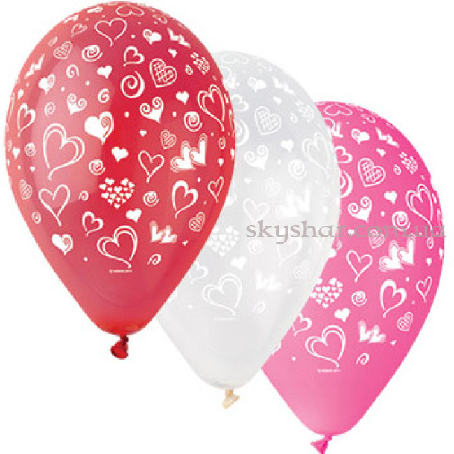 Гелиевые шары "Сердца и завитки" (30 см)