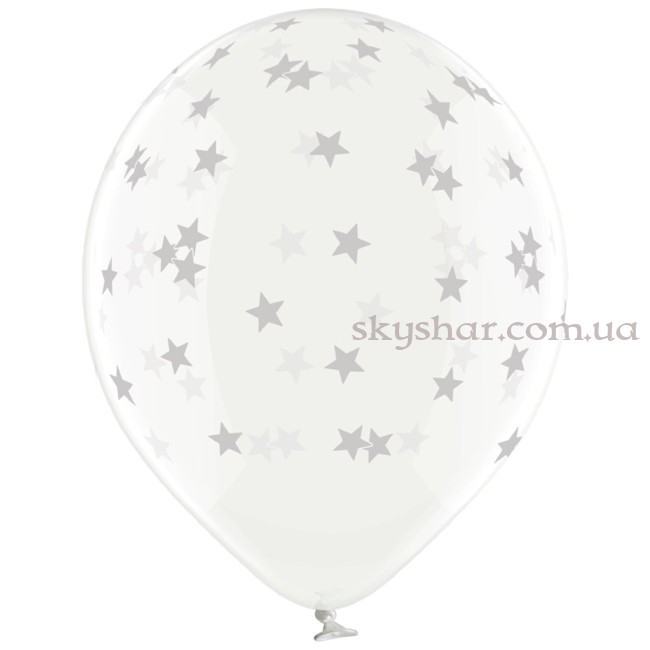 Гелиевые шары "Звезды серебристые на прозрачном" (30 см)