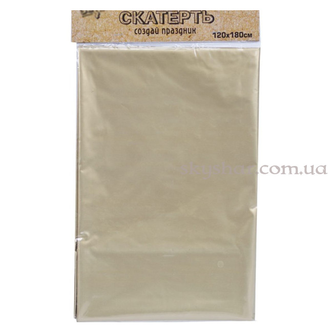 Полиэтиленовая скатерть золотистого цвета для оформления праздничного стола или кенди-бара.