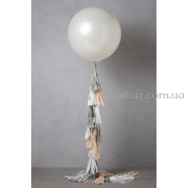 Відгуки Велика біла кулька металік 80 см з гірляндою тассел