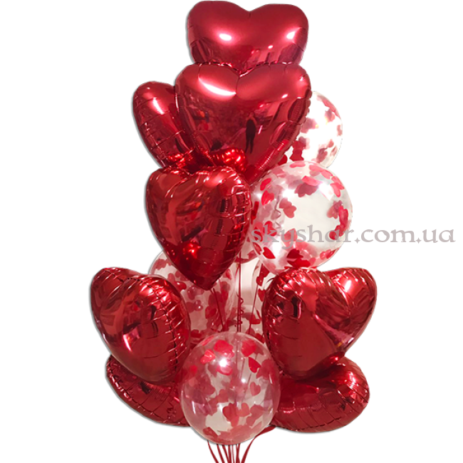 Кульки з конфетті у вигляді червоних сердець з обробкою хай-флоат – 7 шт.