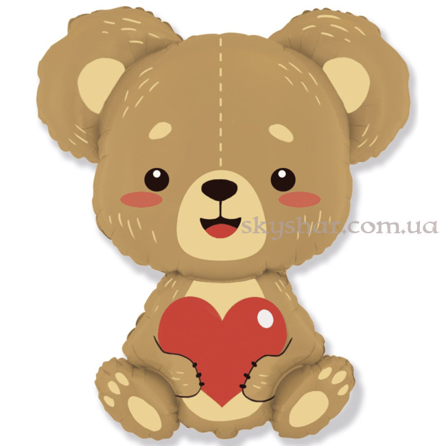Фольгована кулька у формі ведмедика з червоним сердечком у руках