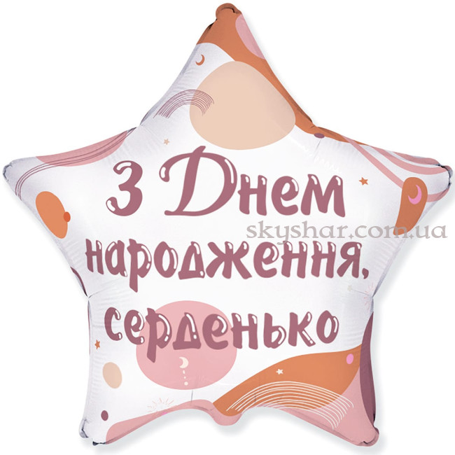 Фольгована кулька у формі зірки з тематичним малюнком "З Днем народження, серденько"