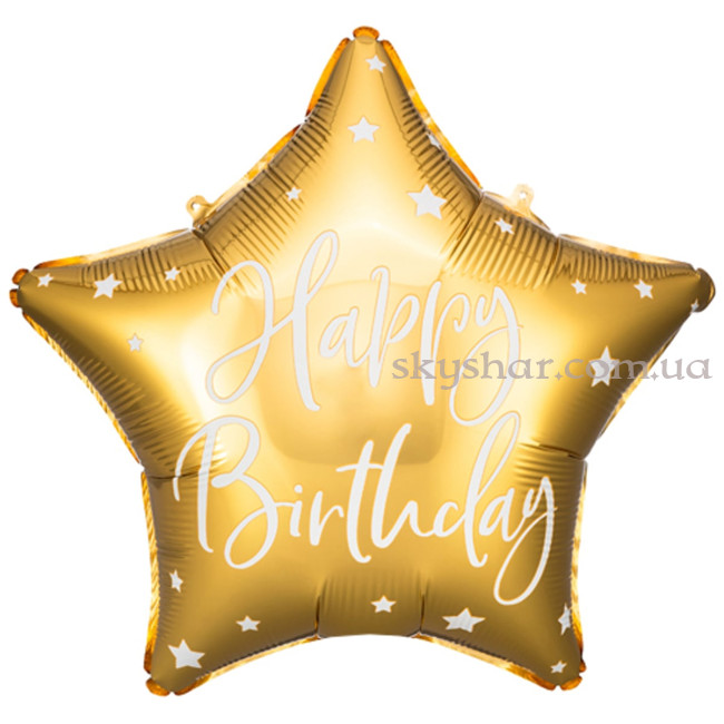 Фольгована кулька "Зірка золота з білим написом Happy Birthday"