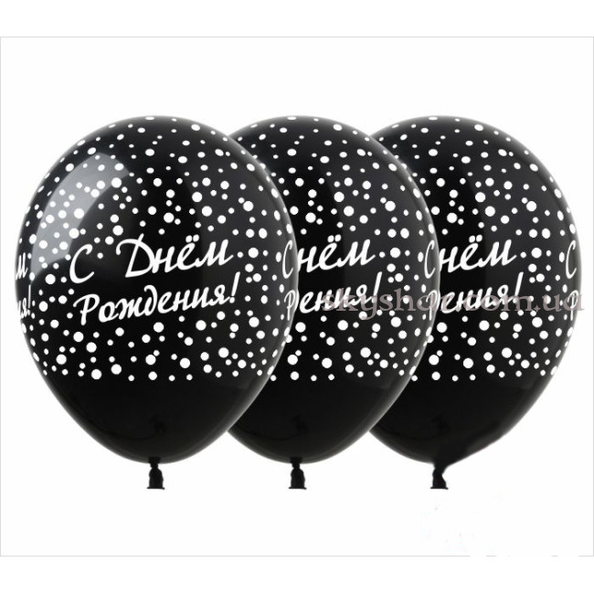 Гелієві кульки "С Днем Рождения! Конфетти на черном" (30 см)